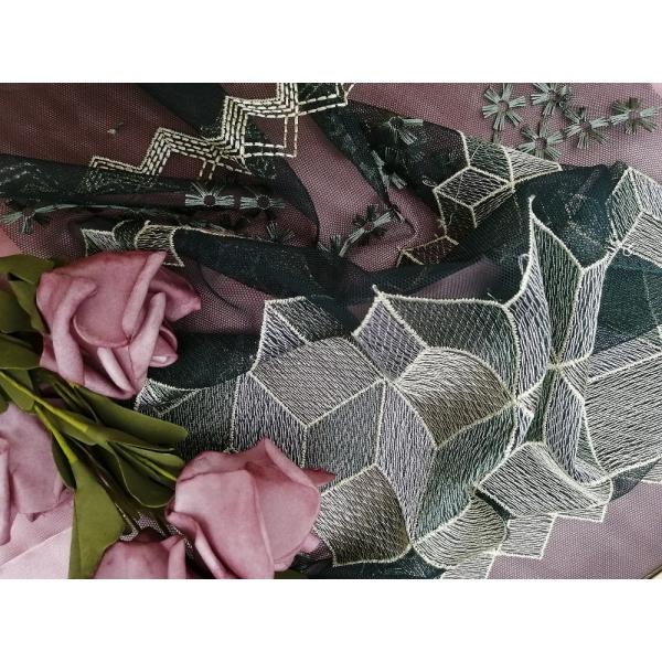 Tulle Mesh Geometric Embroidery Embroidered Lace Fabric for Evening Dress Lady's Dress Garment Brands Little Girl Dress is for Home Textiles, Curtain, Bedding Articles, Apparels, Hats ,Wedding Dresses, Blouses, Lady's Garments , Tablecloth, Little Girls Dresses , Fashion Female Shoes , Pants , Trousers , Shorts , Jackets, etc.