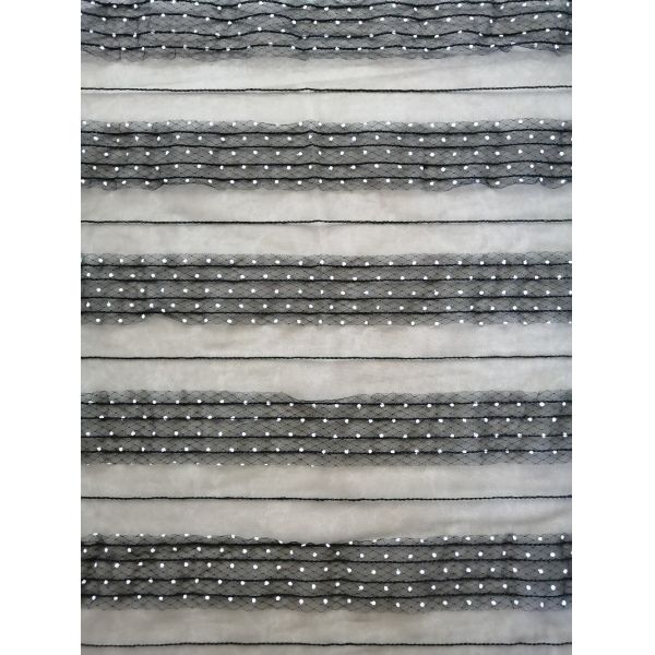 Black Mesh Embroidery Dot Flocked Mesh Fabric Fabric for Evening Dress Lady's Dress Garment Brands Little Girl Dress is for Home Textiles, Curtain, Bedding Articles, Apparels, Hats ,Wedding Dresses, Blouses, Lady's Garments , Tablecloth, Little Girls Dresses , Fashion Female Shoes , Pants , Trousers , Shorts , Jackets, etc.